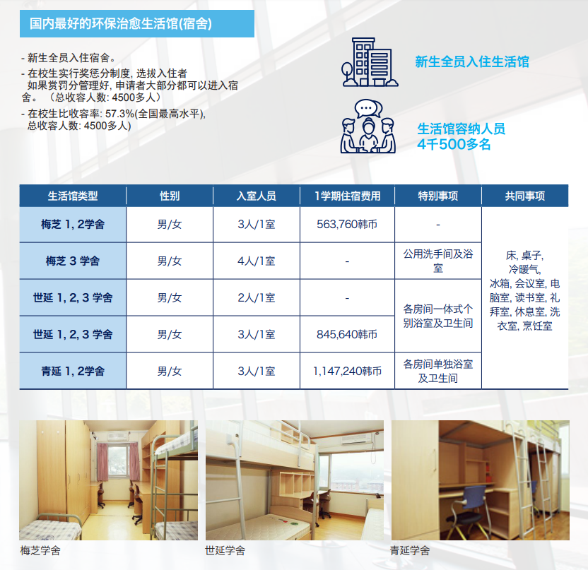 一、首尔校区住宿:每学期费用7500-9100元人民币